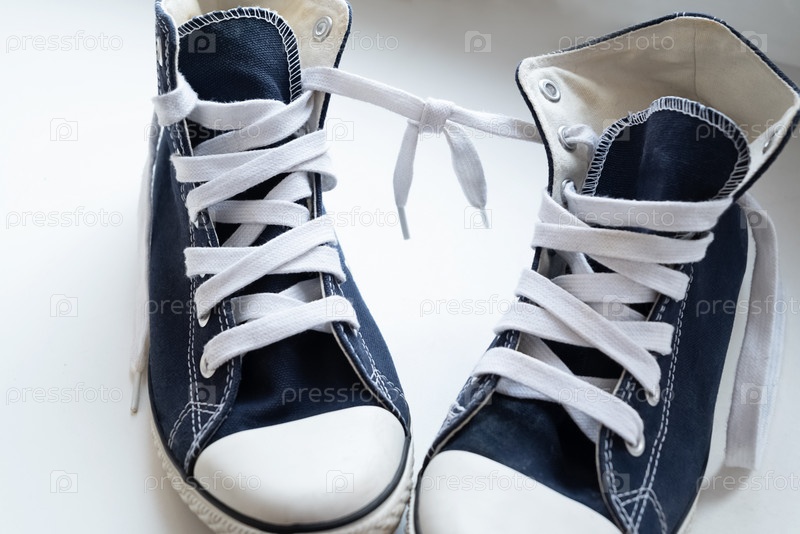 Кроссовки с завязанными шнурками. Концепция классической первоапрельской шутки