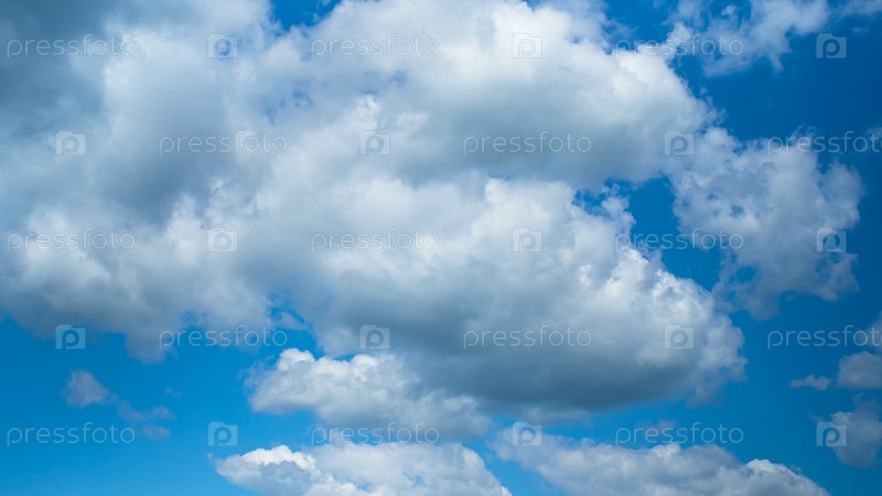 Голубое небо с белыми облаками. Пушистые кучевые белые облака. Естественная погода. Изображение на заднем плане