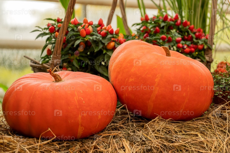 Оранжевые тыквы на осеннем фермерском рынке