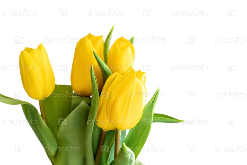 Букет желтых тюльпанов на белом фоне