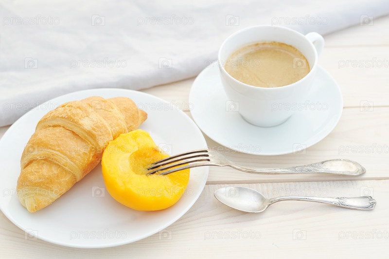 Круассан, персик и кофе