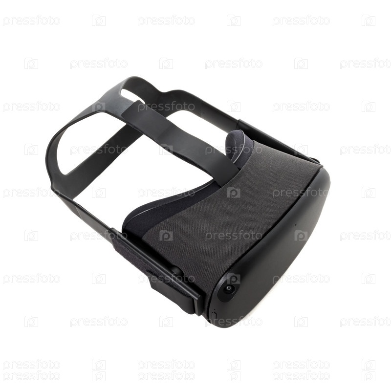 Вид со стороны из верхних очков VR с камерами по краям, изолированными на белом фоне. Шлем виртуальной реальности для игр, развлечений и обучения