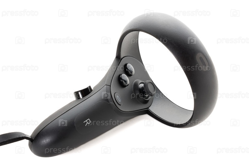 Крупный план джойстики шлема VR, изолированного на белом фоне.Один из контроллеров из комплекта виртуальной реальности