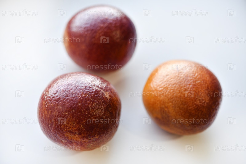 Красные апельсины на белом фоне. Сочные фрукты. Яркие и сочные апельсины