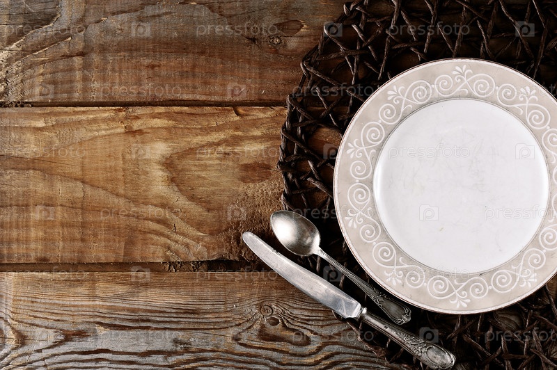 Пустой шаблон для пищевой композиции - тарелка, нож и ложка