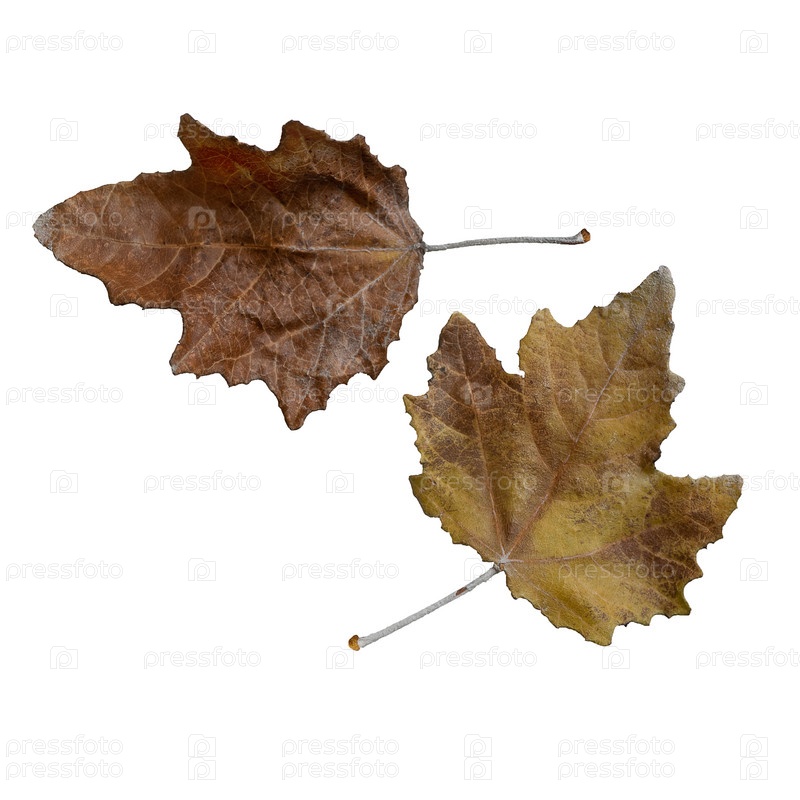Сухие осенние цветные листья крупным планом на белом фоне
