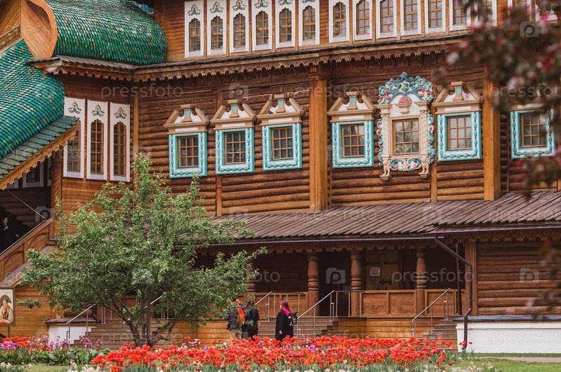 Городской ландшафт. Популярная туристическая достопримечательность. Визитная карточка Москвы. Деревянный дворец царя Алексея Михайловича в Коломенском. Россия, Москва, май 2023 г