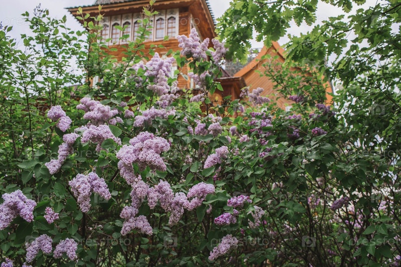 Красивая, пушистая сирень на фоне дворца царя Алексея Михайловича в Коломенском. Россия, Москва, май 2023 г
