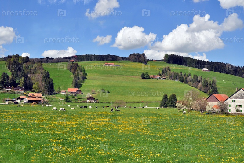 Панорамный вид на сельскую местность на свежие зеленые холмы весной