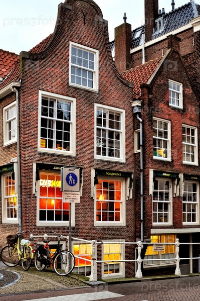 03 января 2013 г., Амстердам, Нидерланды - Фасады типичных домов из красного кирпича на улицах Амстердама