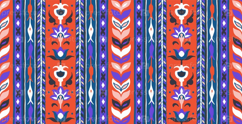Набор этнических элементов. Бордюр представляет собой полосу с цветами, листьями, ветками, вензелями. Народная вышивка. Славянский, украинский, русский мотив. Хохлома, матрешка, дымковская игрушка. Мексиканский, индийский, цыганский ковер. Вязаное кружево