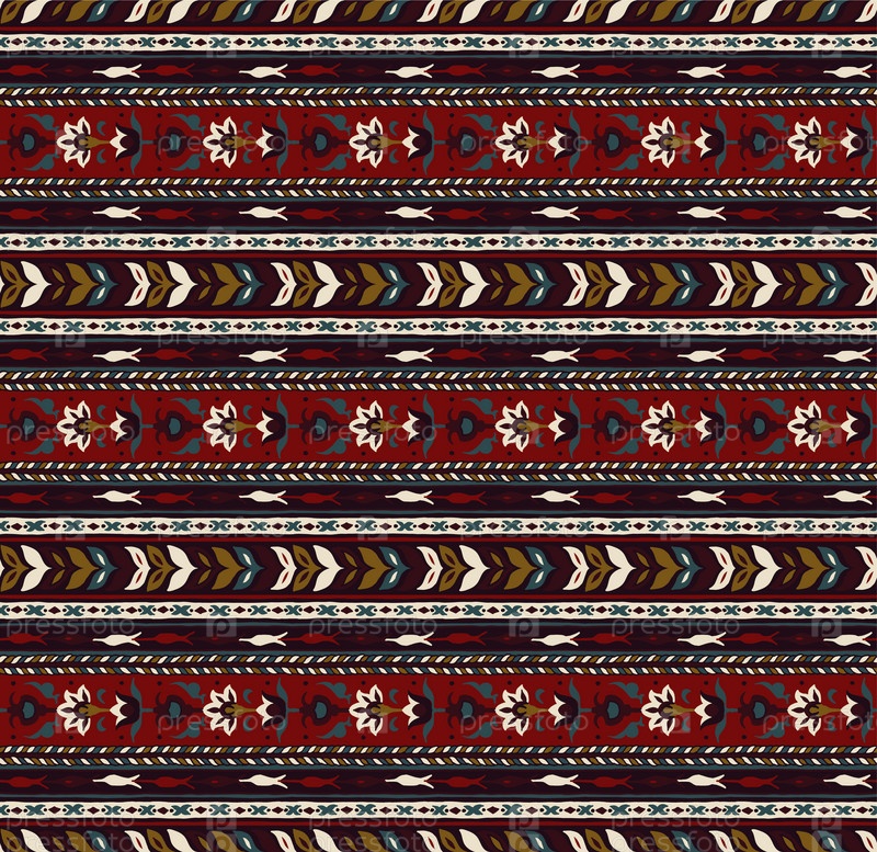 Геометрический фольклорный орнамент икат. Племенная этническая векторная текстура. Бесшовный полосатый узор в стиле ацтеков. Рисунок племенной вышивки. Индийский, скандинавский, цыганский, мексиканский, народный узор