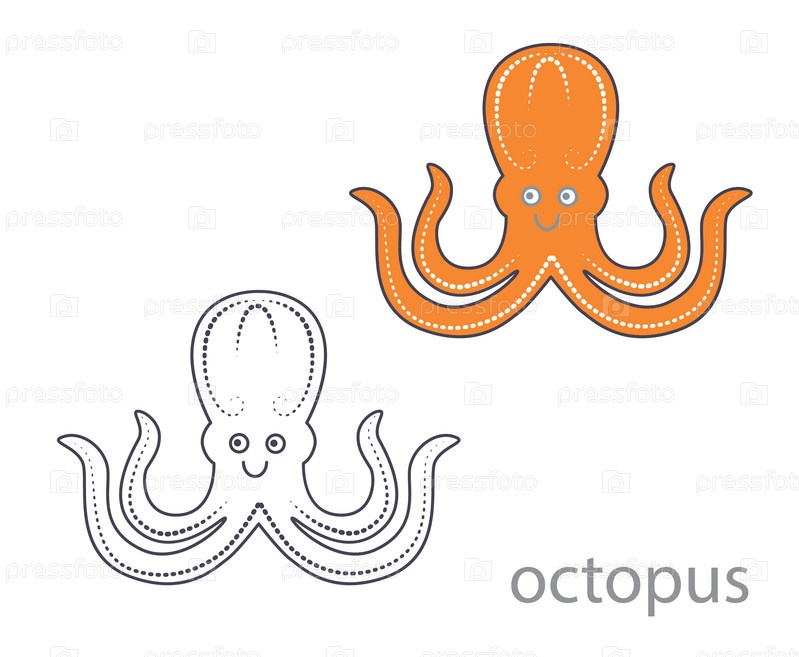 Набор оранжевого октопода и контуры для окраски Красивая мультфильмная осьминог
