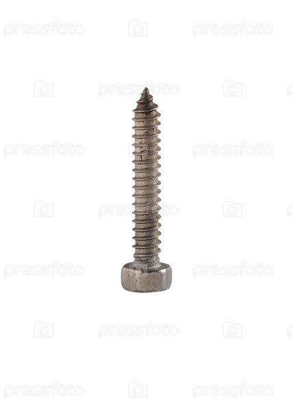 Металлический винт с головкой гаечного ключа, изолированный на белом фоне. Изолированный саморез