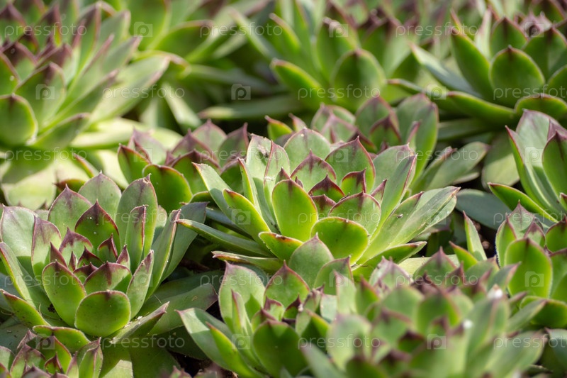 Группа вечнозеленых почвенных растений Sempervivum, известная как Houseleek в скалах, крупный план, фоновая текстура