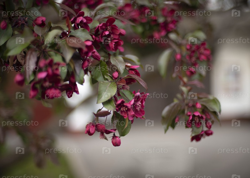 яблоня с красными цветами