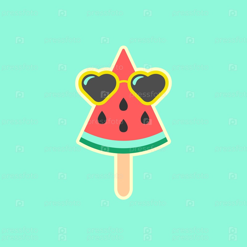 Кусочек арбуза на палочке с очками. Стикер
