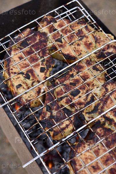 Свинина в железной сетке. Мясо барбекю. Жареная свинина. Свиная корейка
