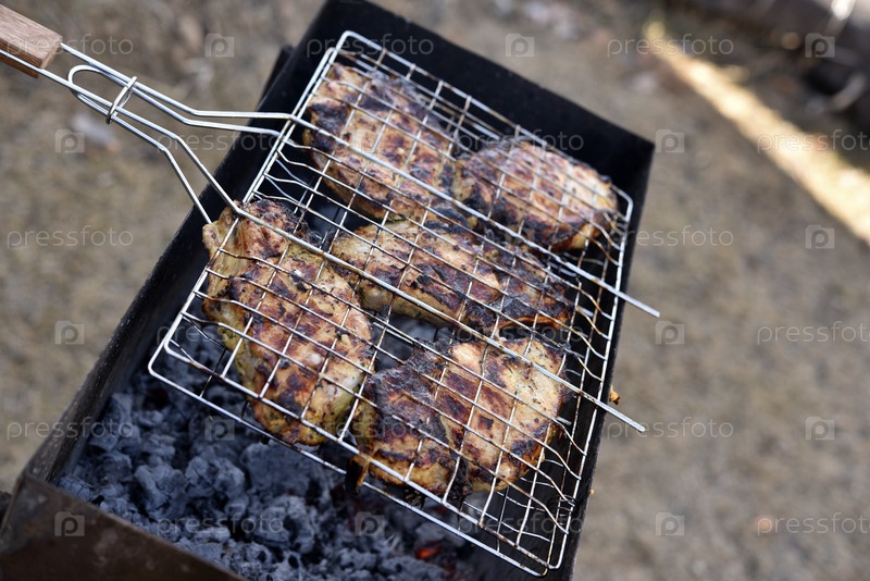 Жареная свинина на гриле. Жарка мяса на гриле. Мясо в железной сетке