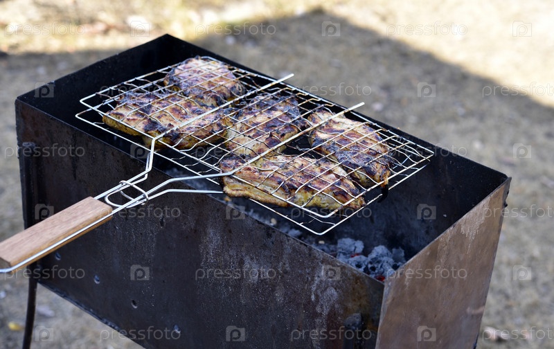 Жареная свинина на гриле. Жарка мяса на гриле. Мясо в железной сетке