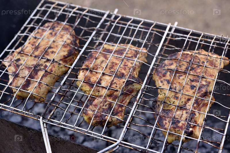 Свинина в железной сетке. Мясо барбекю. Жареная свинина. Свиная корейка