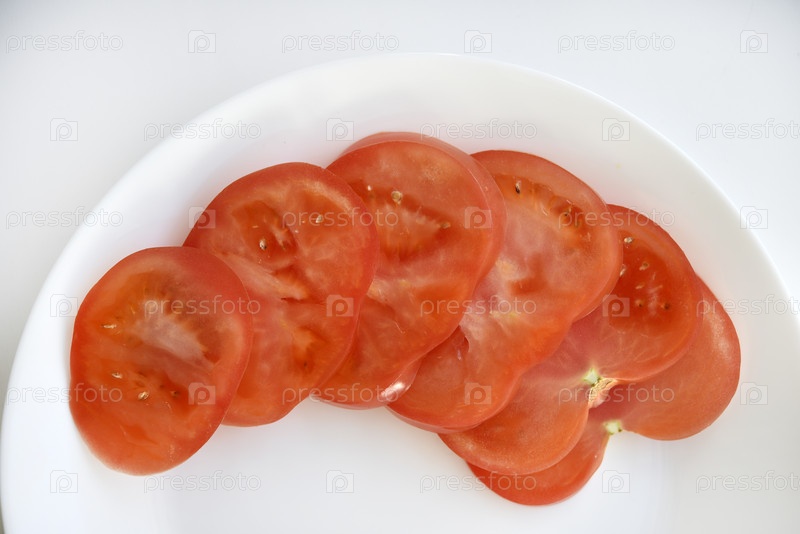 Нарезанный помидор на белой тарелке. Салат из помидоров. Нарезанные овощи. Красные помидоры