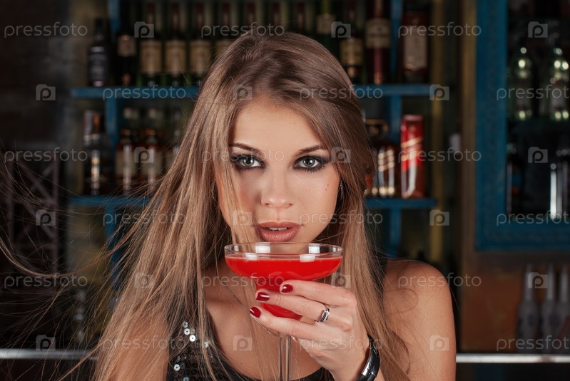 Женщина с коктейлем в баре