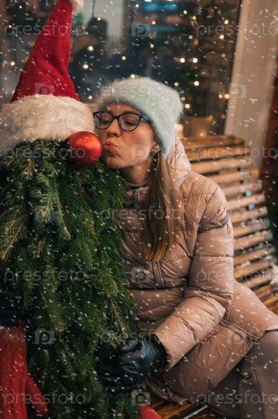 Красивая женщина с манекеном, украшенным елкой