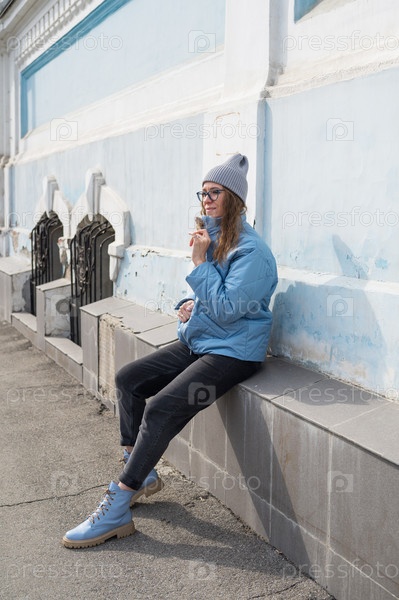 Портрет стильной женщины в синей куртке