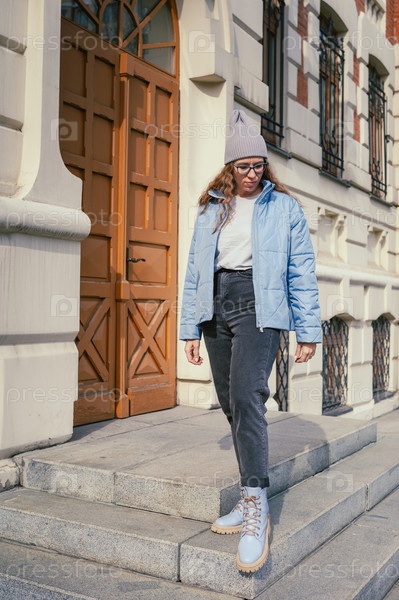 Портрет стильной женщины в синей куртке
