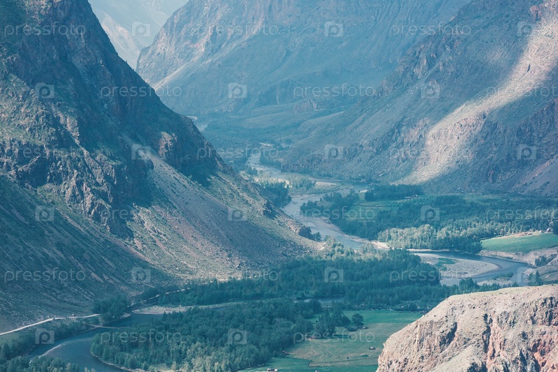 Долина реки Чулышман. Алтайские горы, Россия, прекрасный летний день