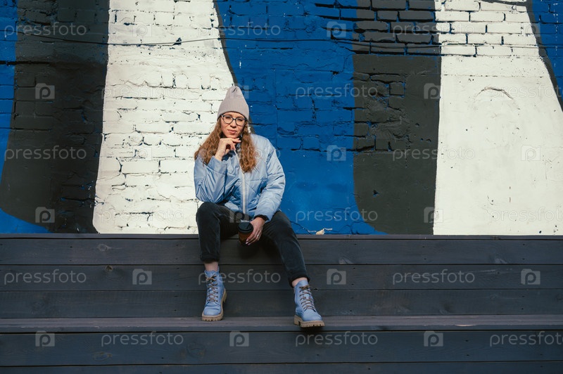 Портрет стильной женщины в синей куртке