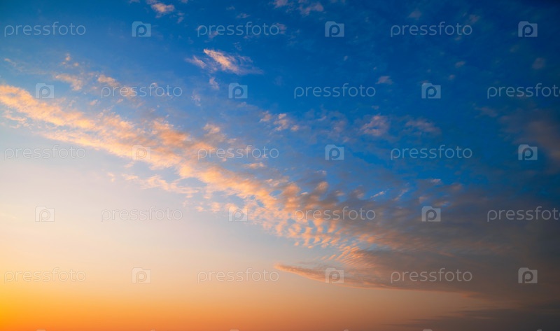 Настоящее удивительное закатное небо с нежными разноцветными облаками