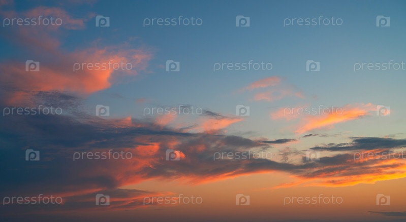 Настоящее удивительное закатное небо с нежными разноцветными облаками