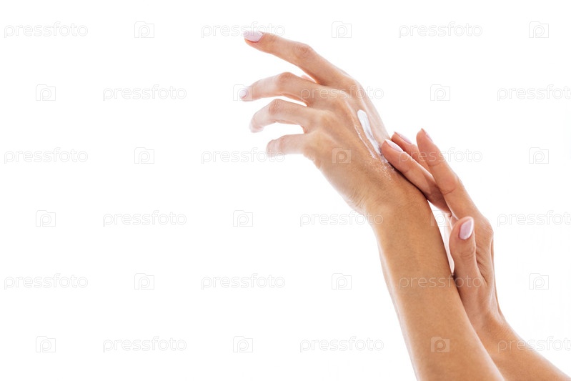 Красивые женские пальцы вымазаны белым кремом