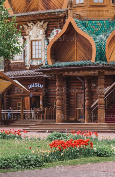 Городской ландшафт. Популярная туристическая достопримечательность. Визитная карточка Москвы. Деревянный дворец царя Алексея Михайловича в Коломенском. Россия, Москва, май 2023 г
