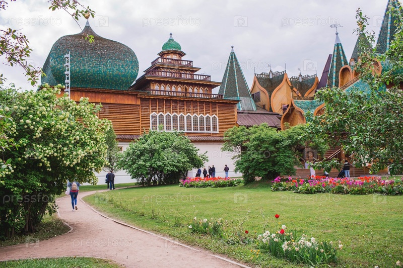 Городской ландшафт. Популярная туристическая достопримечательность. Визитная карточка Москвы. Деревянный дворец царя Алексея Михайловича в Коломенском. Россия, Москва, май 2023 г
