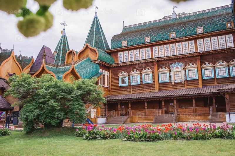 Городской ландшафт. Популярная туристическая достопримечательность. Визитная карточка Москвы. Деревянный дворец царя Алексея Михайловича в Коломенском. Россия, Москва, май 2023 г