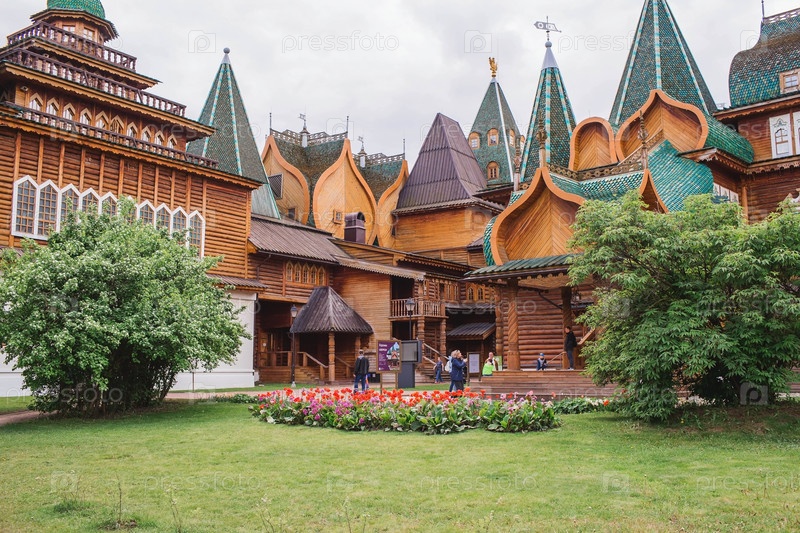 Городской ландшафт. Популярная туристическая достопримечательность. Визитная карточка Москвы. Деревянный дворец царя Алексея Михайловича в Коломенском. Россия, Москва, май 2023 г