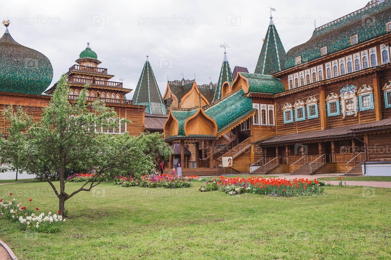 Городской ландшафт. Популярная туристическая достопримечательность. Визитная карточка Москвы. Деревянный дворец царя Алексея Михайловича в Коломенском. Россия, Москва, май 2023 г