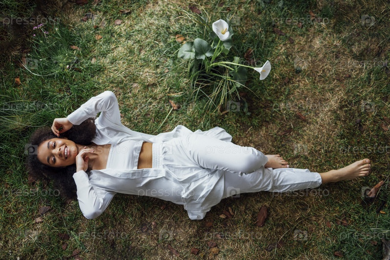 Мода и красота снимают очаровательную девушку смешанной расы в белом