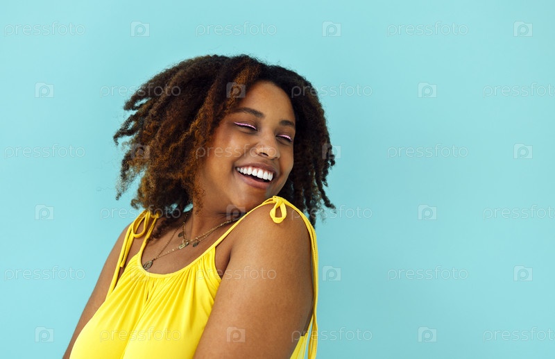 Красивая яркая радостная африканская женщина в желтом платье