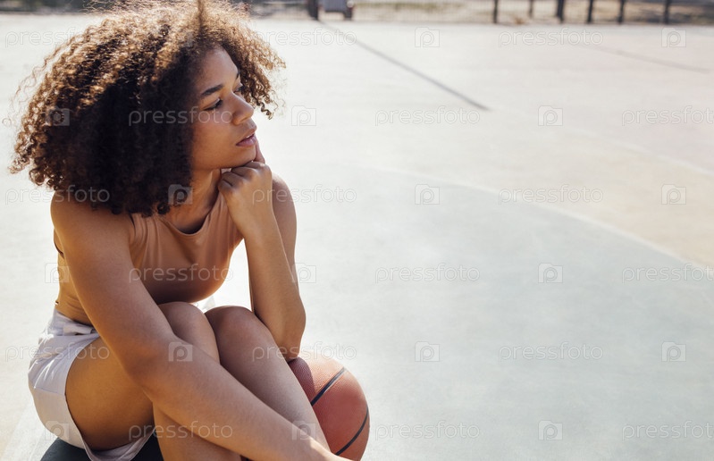 Стильная крутая девушка-подросток собирается на баскетбольной площадке, играет в баскетбол на открытом воздухе