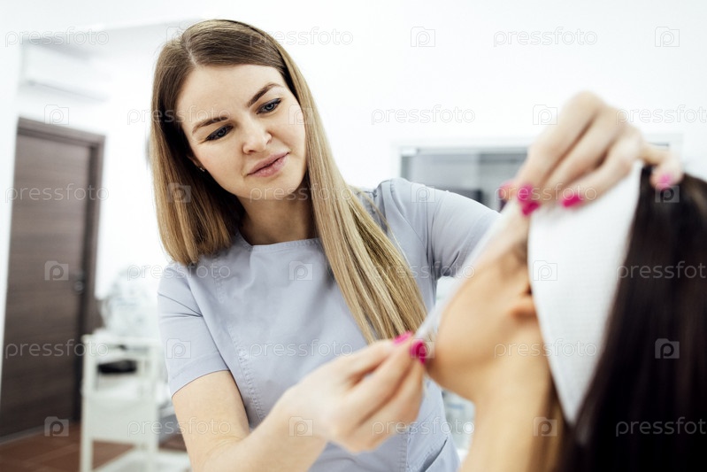 Подтяжка нитей, подстриженный косметолог готовится к процедуре