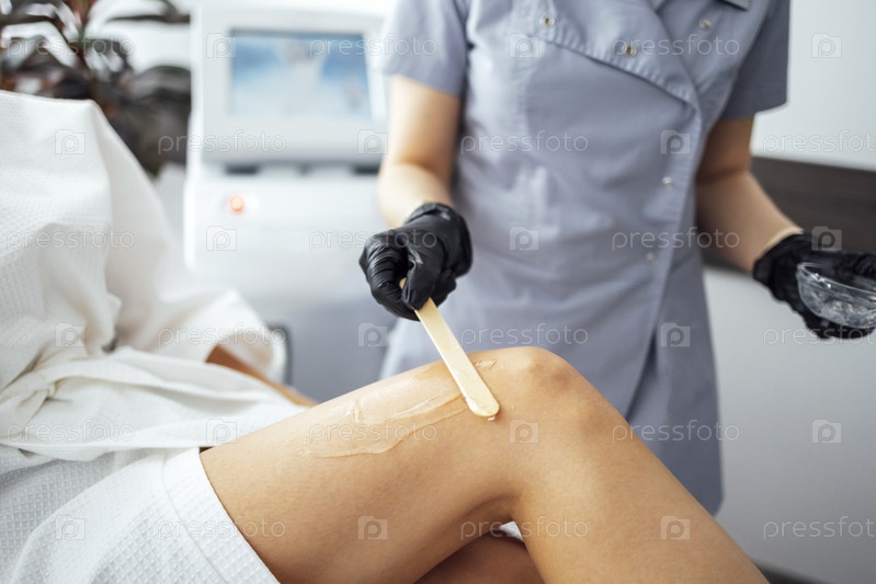Подготовка ног клиентов перед процедурой лазерной эпиляции в спа-салоне