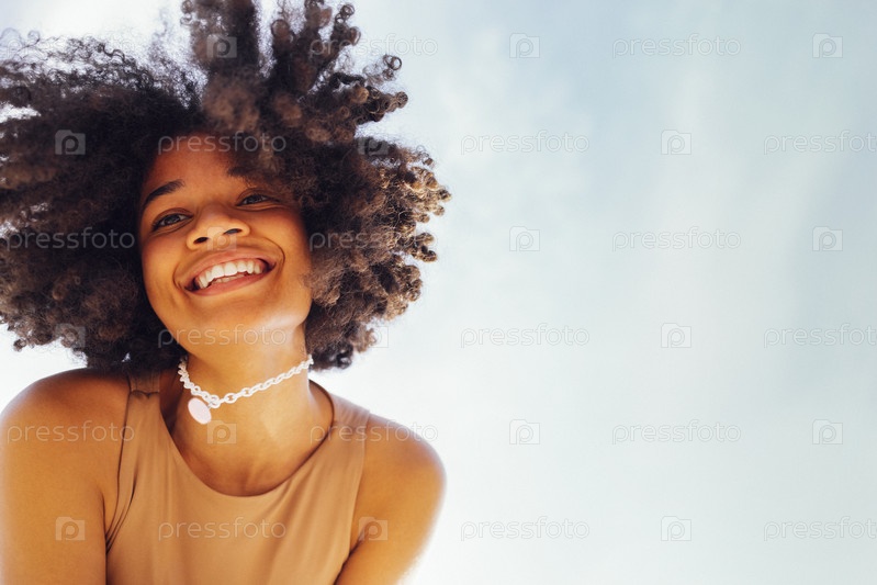 Крупный план портрета счастливой африканской американки-подростка, сладко улыбающейся в камеру
