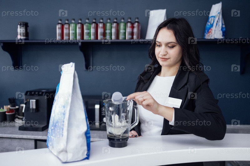 Бариста-эмаль наливает молочный коктейль в стакан соломинкой