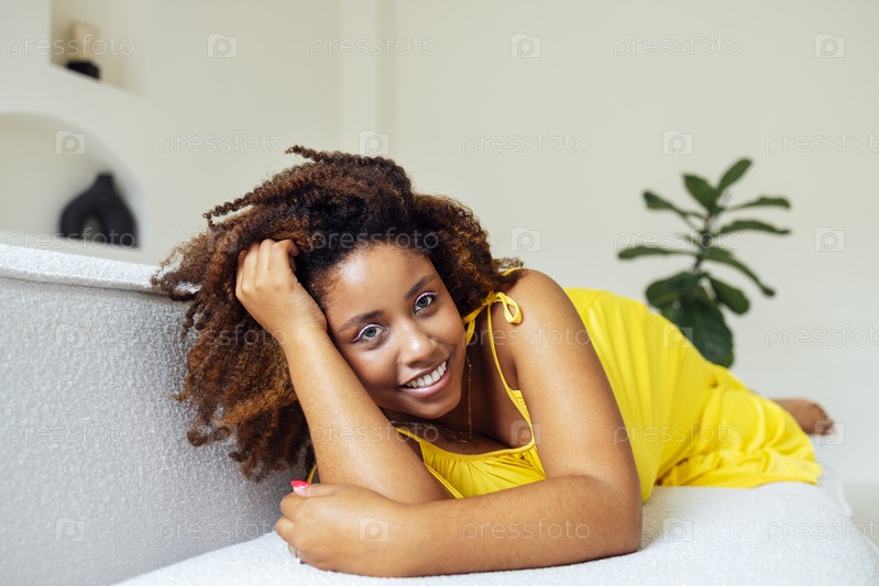 Красивая фигуристая негабаритная молодая американка афто в желтом платье