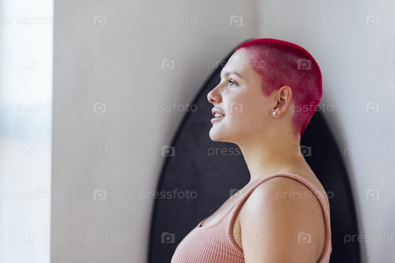 Серфер, рыжеволосая лысая женщина на борту собирается на пляж