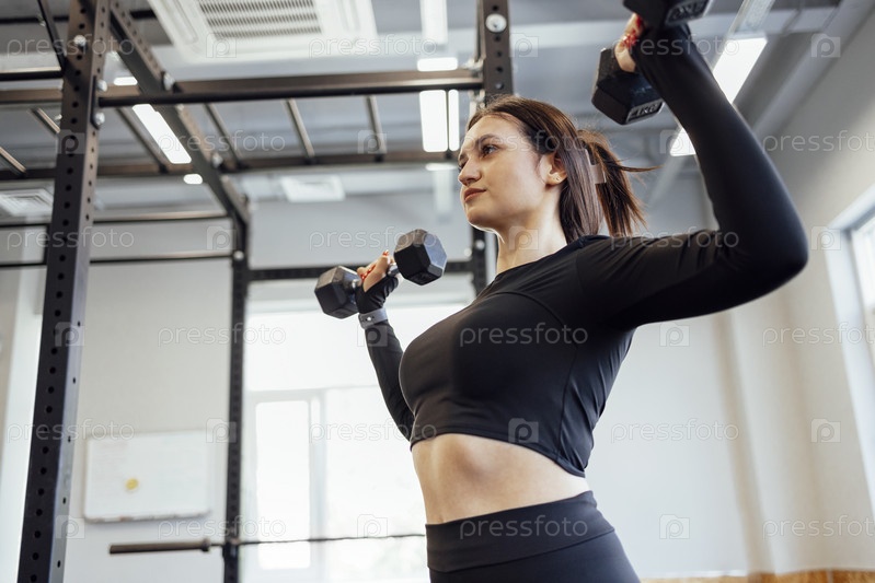 Сильная брюнетка занимается кроссфитом